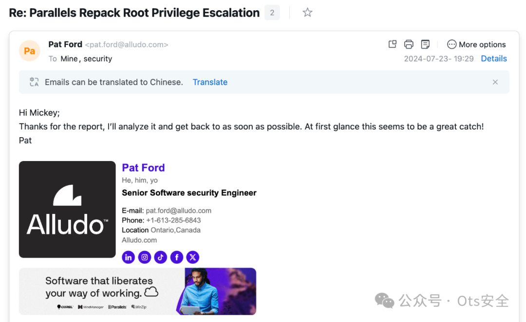 既然供应商Parallels 装聋作哑,我现在必须披露这个0 day 漏洞。Zero Day Initiative (ZDI)和受影响的供应商Parallels都令人失望,不是吗?