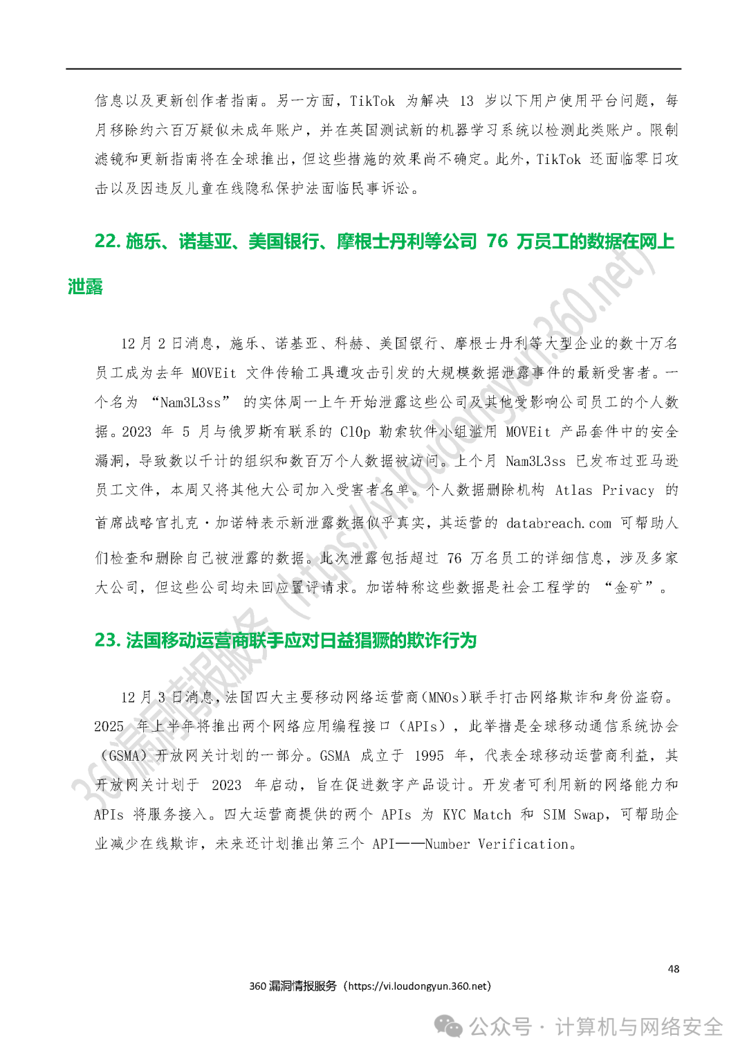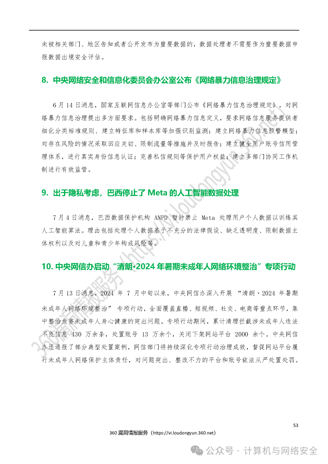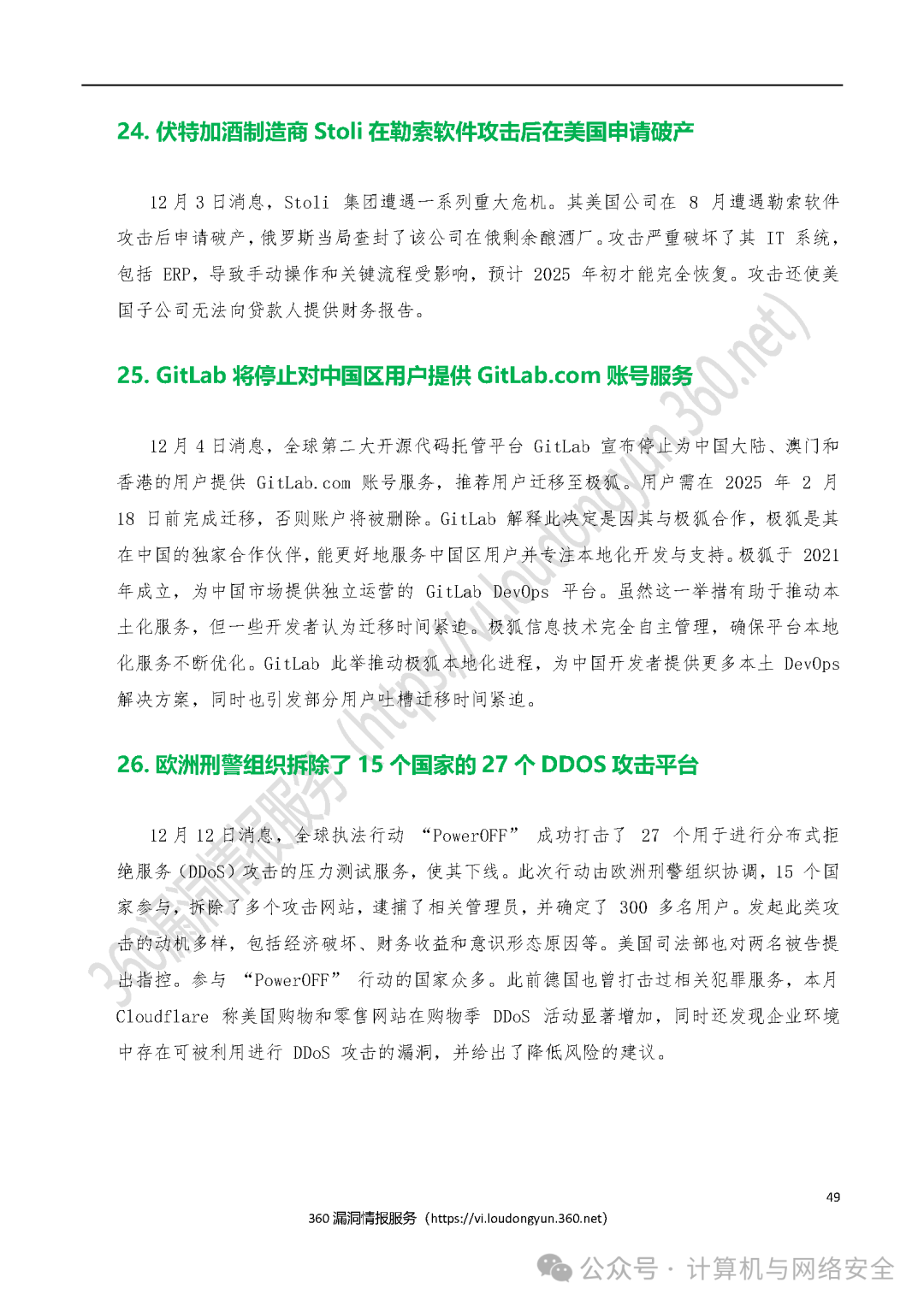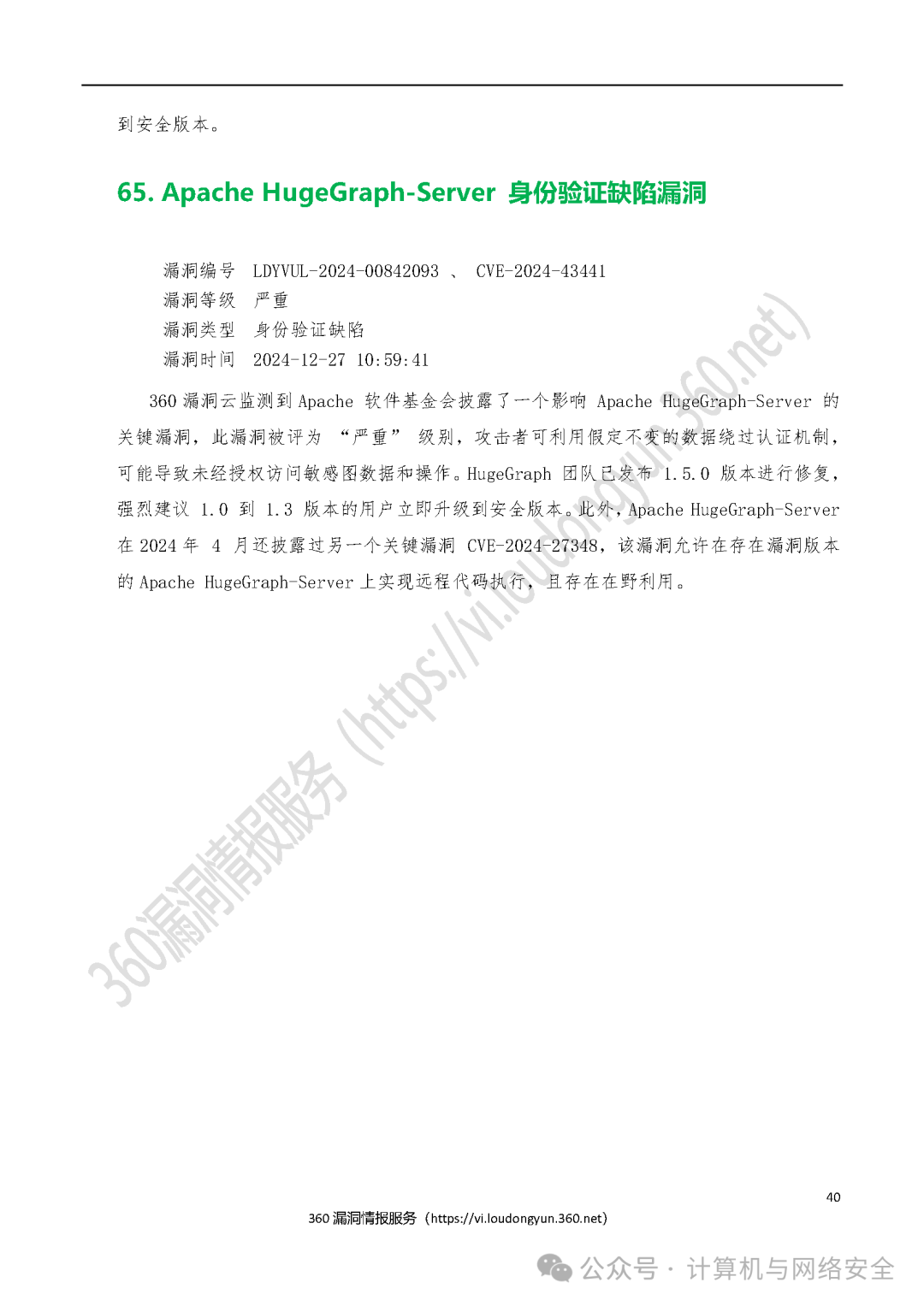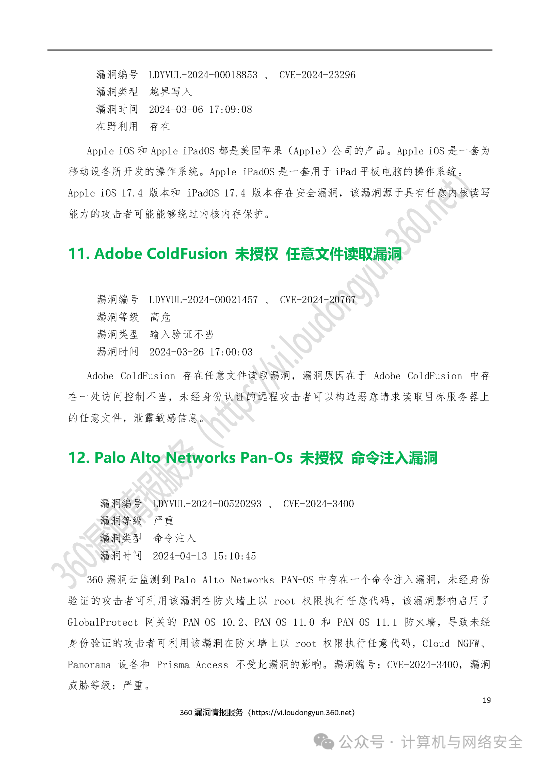 2024年,360漏洞情报团队基于安全大模型,结合使用广度、行业关注度、客户关注度、漏洞攻击复杂度和补丁发布情况等多维度指标对全年披露的漏洞进行综合研判分析,发布了超800条需要用户重点关注的漏洞情报,其中600条易被利用,300余条为需要尽快修复的高危漏洞,有效帮助企业、机构和相关从业者进行针对性安全防护。