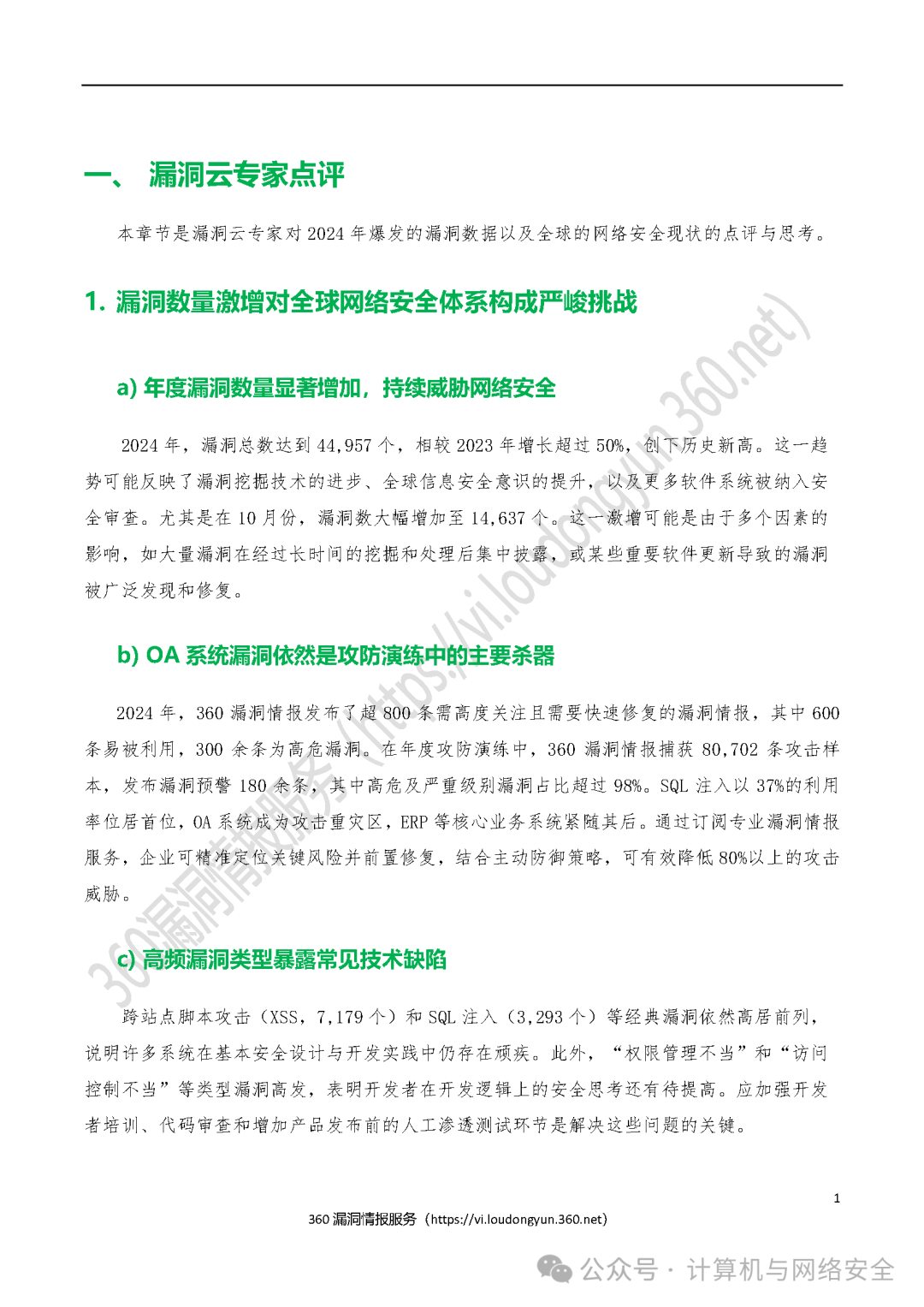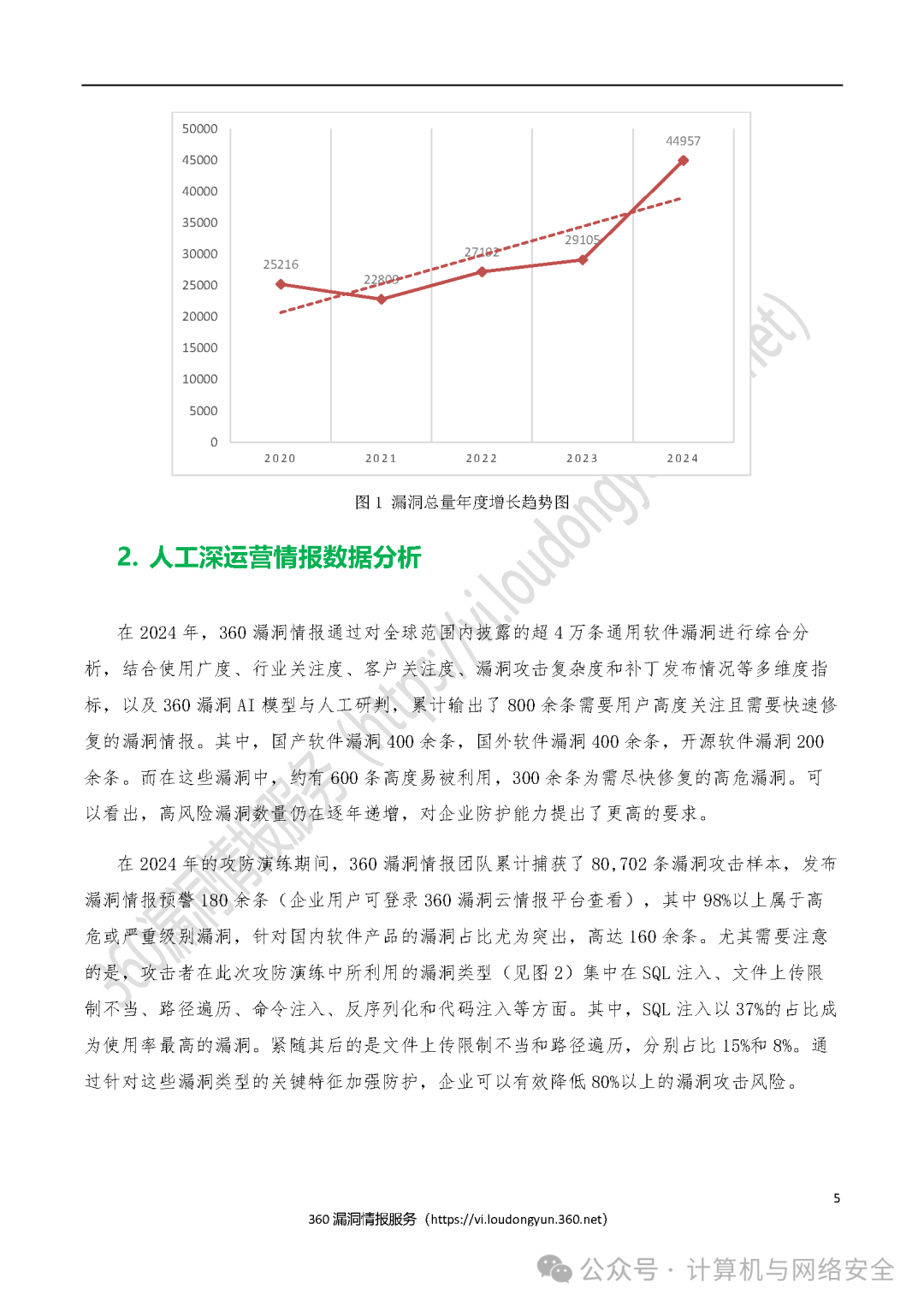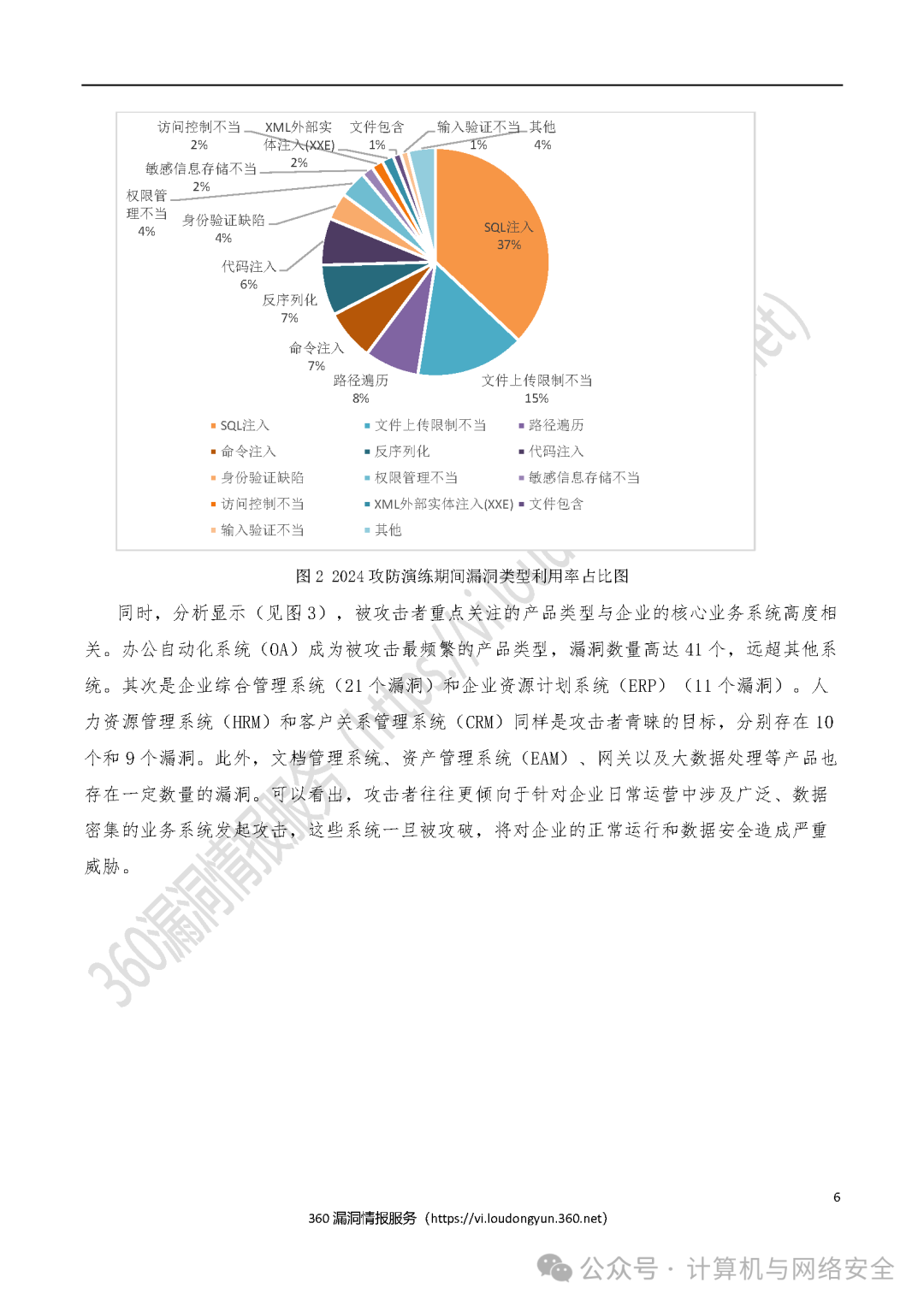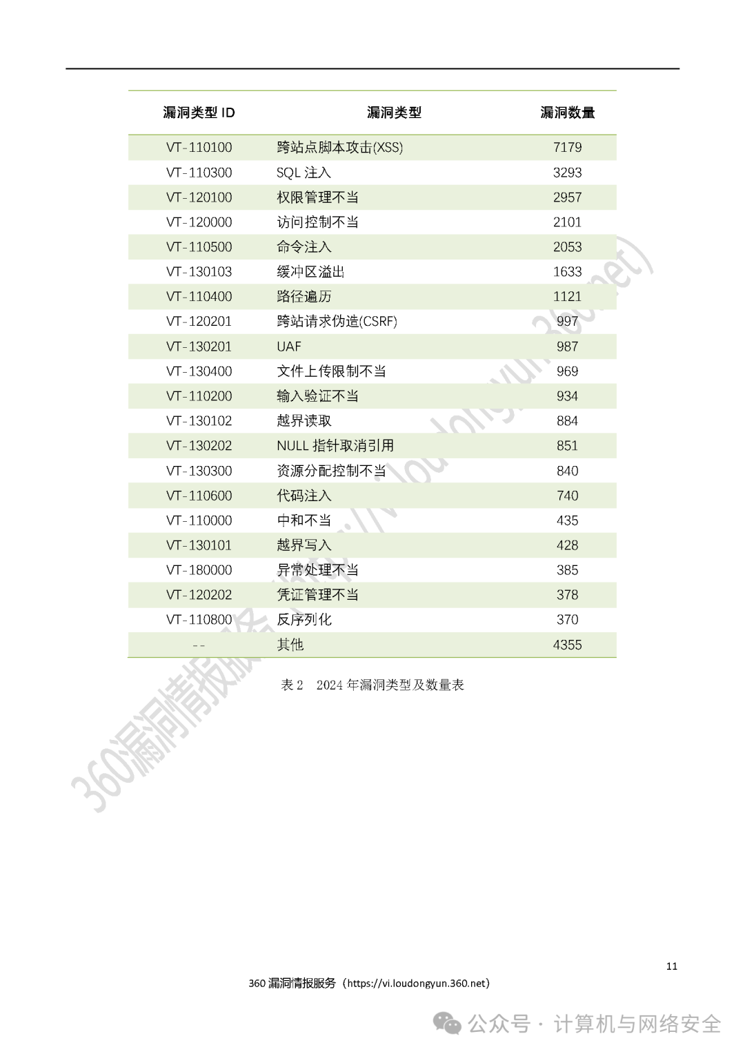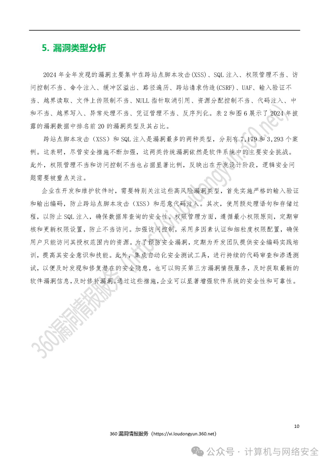 《报告》指出,跨站点脚本攻击(XSS)和SQL注入仍然是最常见的漏洞类型,分别占据了漏洞数量的前两位。尽管近年来安全措施不断加强,但这些经典漏洞仍然频繁出现在网络安全事件中,表明很多系统在基本的安全设计和开发实践中依然存在隐患。