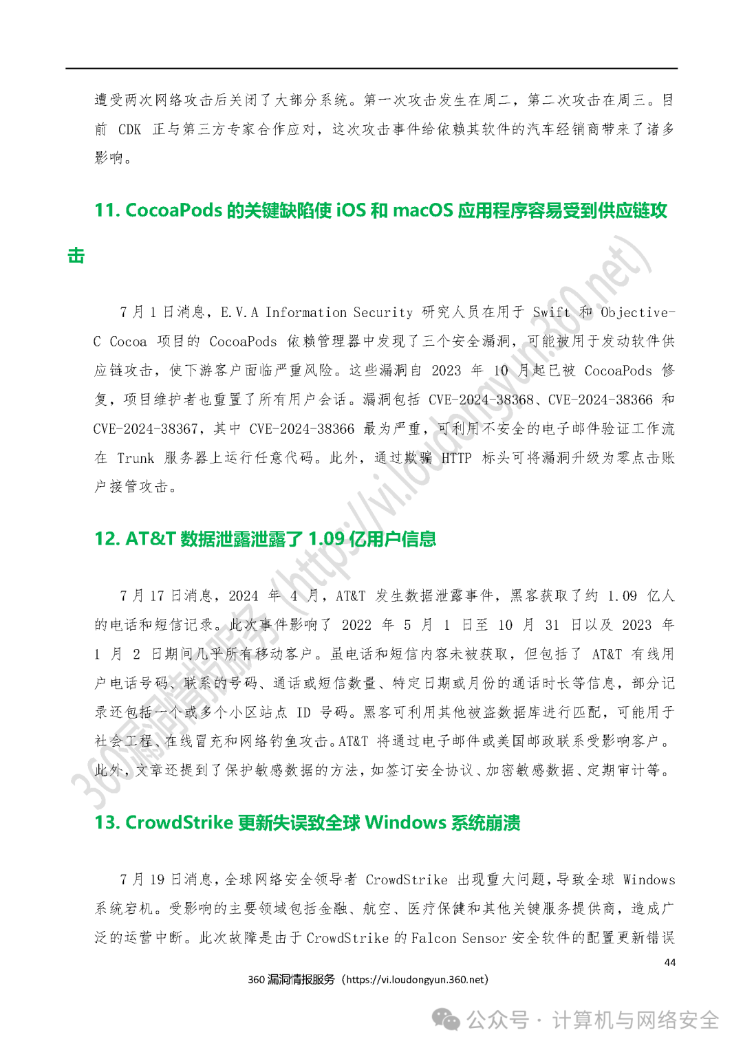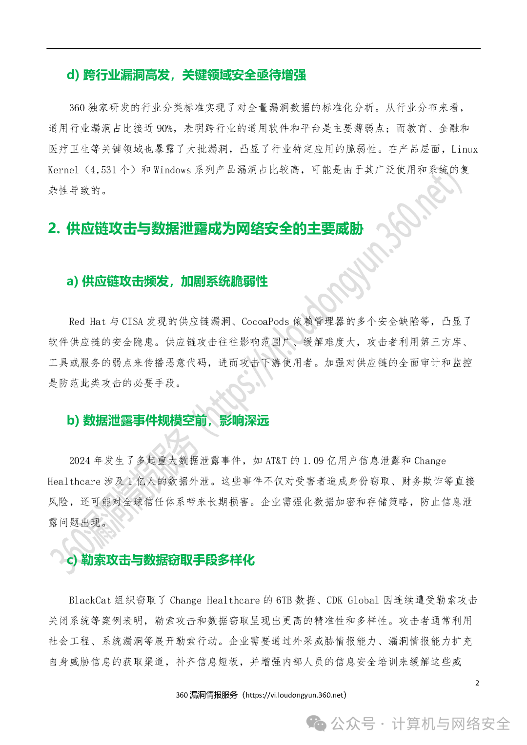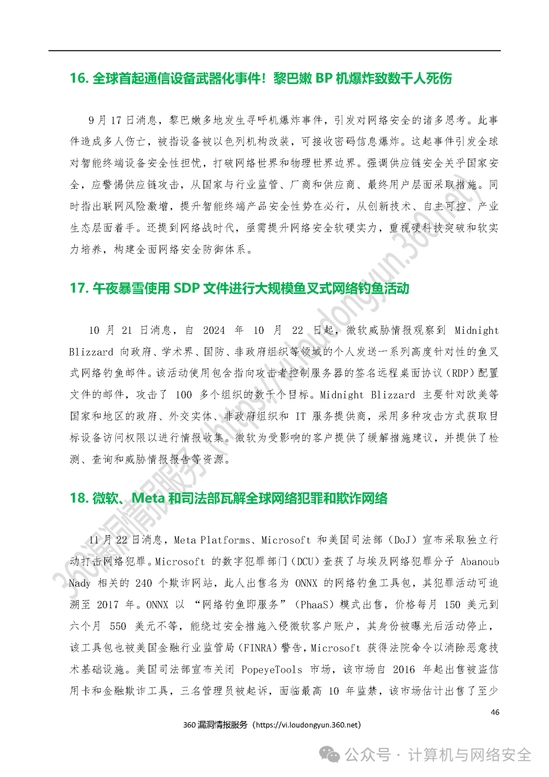 《报告》显示,2024年内软件供应链相关漏洞频现,如Red Hat与CISA发现的供应链漏洞、CocoaPods依赖管理器的多个安全缺陷等;此外,黎巴嫩大量BP机和寻呼机被远程引爆,造成数千人受伤,背后直指供应链攻击,供应链安全风险管理成为重要挑战。加强对供应链的全面审计和监控是防范此类攻击的必要手段。