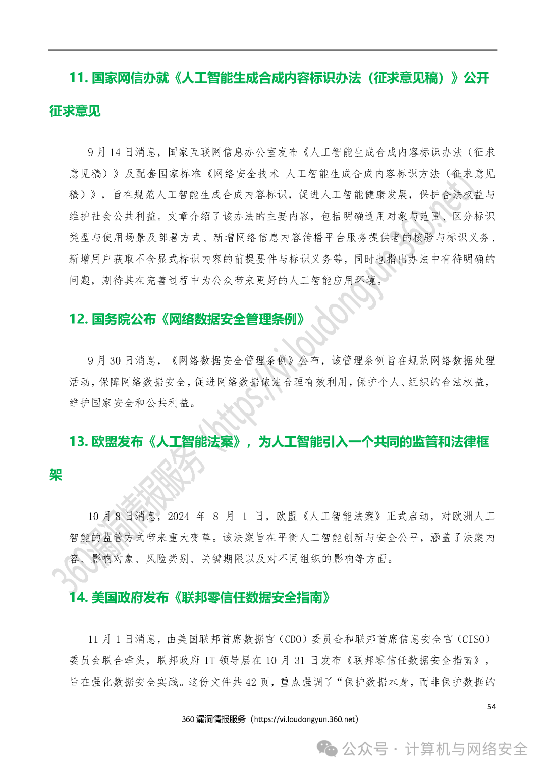 此外,人工智能相关法律法规持续出台,联合国通过人工智能全球决议、欧盟的《人工智能法案》以及中国《人工智能生成合成内容标识办法(征求意见稿)》的发布,体现了全球各国对AI技术潜在风险的高度关注。不难看出,AI与新兴技术的治理将成为各界关注的焦点。