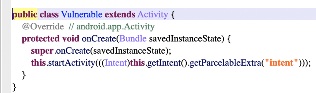 JEB反编译,查看AndroidManifest.xml文件,发现Vulnerable是可导出的,可能漏洞点就在这里。