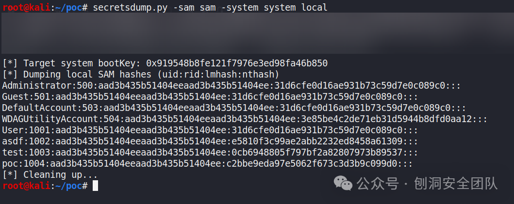 在对 SAM、SYSTEM、SECURITY 文件执行上述步骤后,解析文件以检索本地管理员/用户的凭据(SECURITY 对于机器凭据、userKey 以及进一步的本地缓存凭据等至关重要)