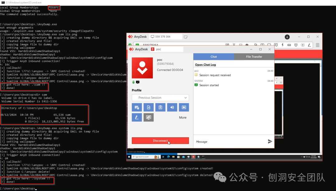 该漏洞是 “AnyDesk” 服务以 NT AUTHORITY\SYSTEM 权限执行的任意文件读取/复制操作。