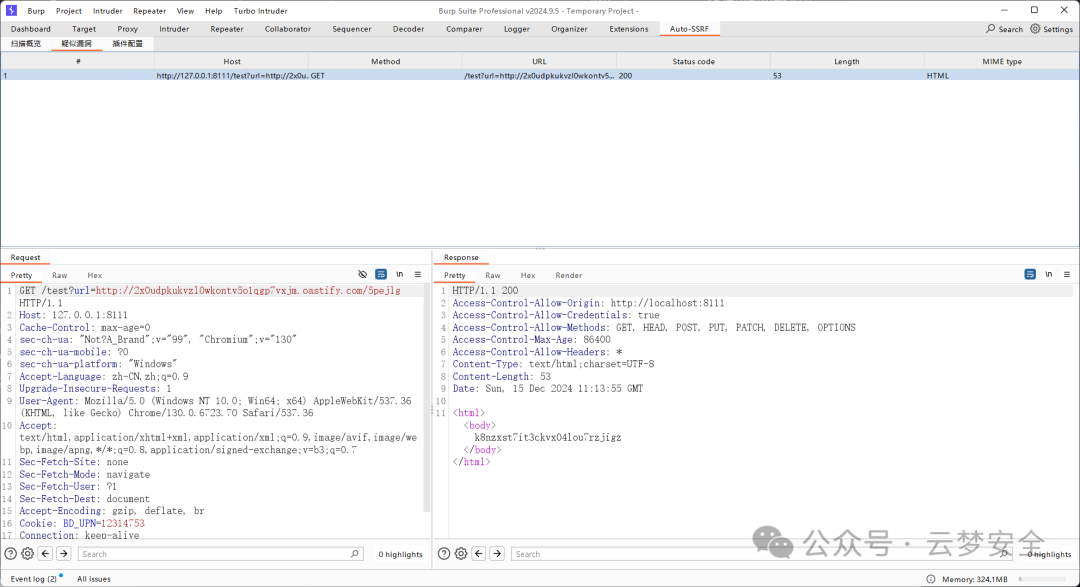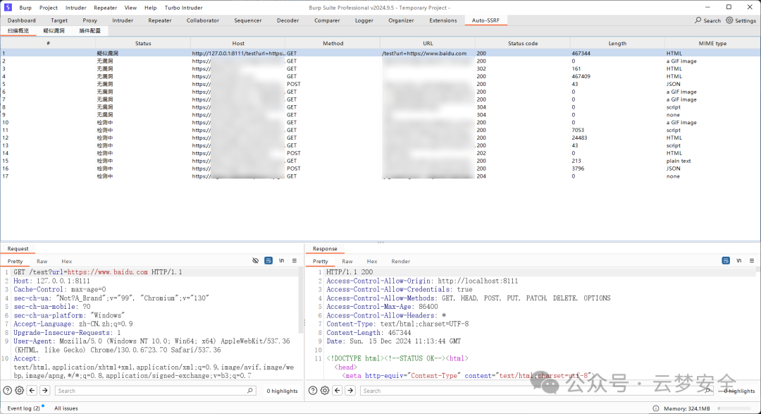 Auto-SSRF是一款基于BurpSuite MontoyaApi的自动SSRF漏洞探测插件, 捕获BurpSuite 流经Passive Audit、Proxy、Repeater的流量进行SSRF漏洞探测分析。