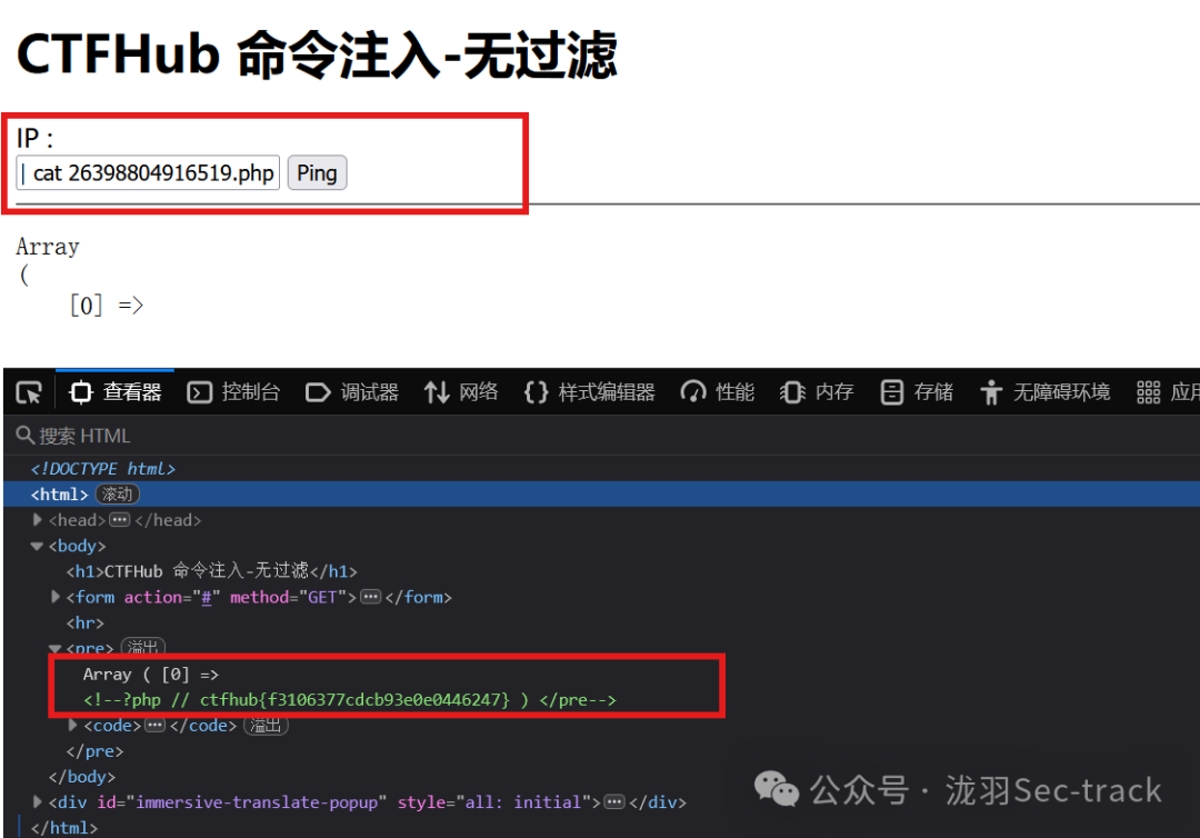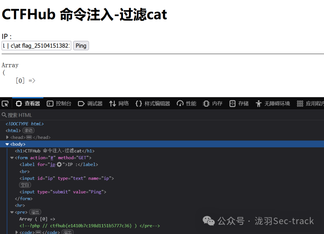 或者使用转义符 \ 绕过 也可以得到flag,会将c\at 分为两个字符串