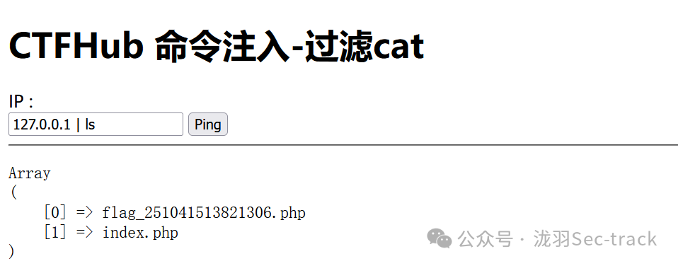 if (!preg_match_all("/cat/", $ip, $m)) { //过滤了cat字符串