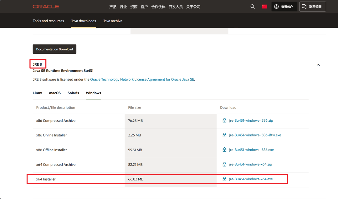 2、在Java Downloads | Oracle 中国上下载JAVA 8(==一定要下载JAVA 8,这个版本的JAVA复现成功率最高==)
