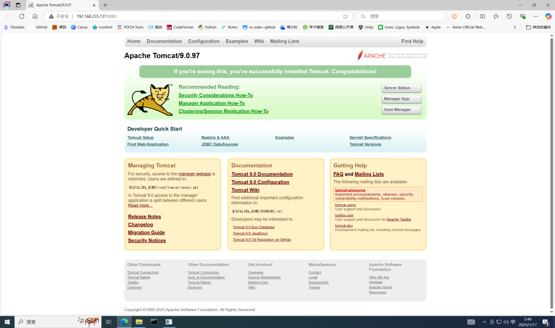 启动Tomcat(乱码问题不大,web.xml改一下GBK就没问题了,使用虚拟机的IPv4地址访问8080端口)