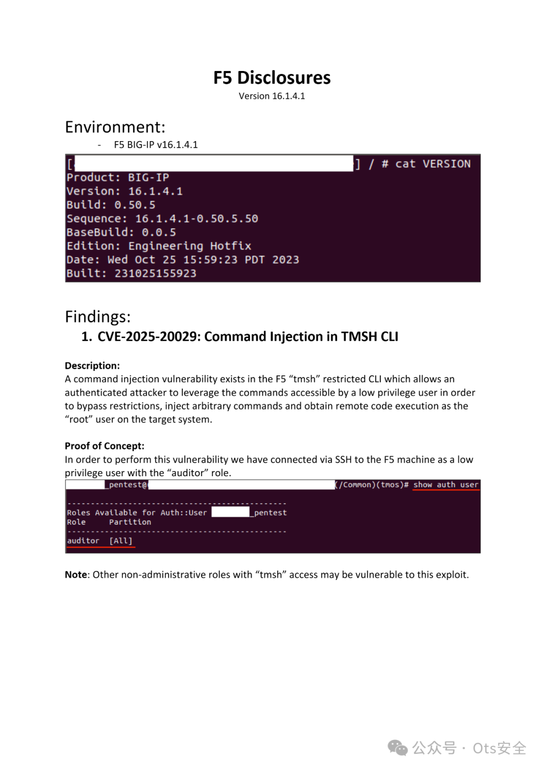 CVE-2025-20029:F5 Big-IP限制性CLI中的TMSH CLI注入命令注入