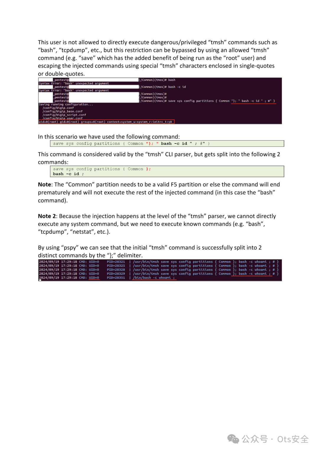 F5“tmsh”受限 CLI 中存在命令注入漏洞,该漏洞允许经过身份验证的攻击者利用低权限用户可访问的命令来绕过限制、注入任意命令并以目标系统上的“root”用户身份获取远程代码执行。