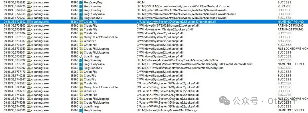 研究人员的笔记表明,攻击者使用了标准的 DLL 侧载技术。虽然他们仍在调查权限提升的确切机制,但他们建议,安排 cleanmgr.exe 在 NT AUTHORITY\SYSTEM 帐户下运行或等待系统触发的执行(例如,由于磁盘空间不足或临时文件过多)可能是潜在的途径。