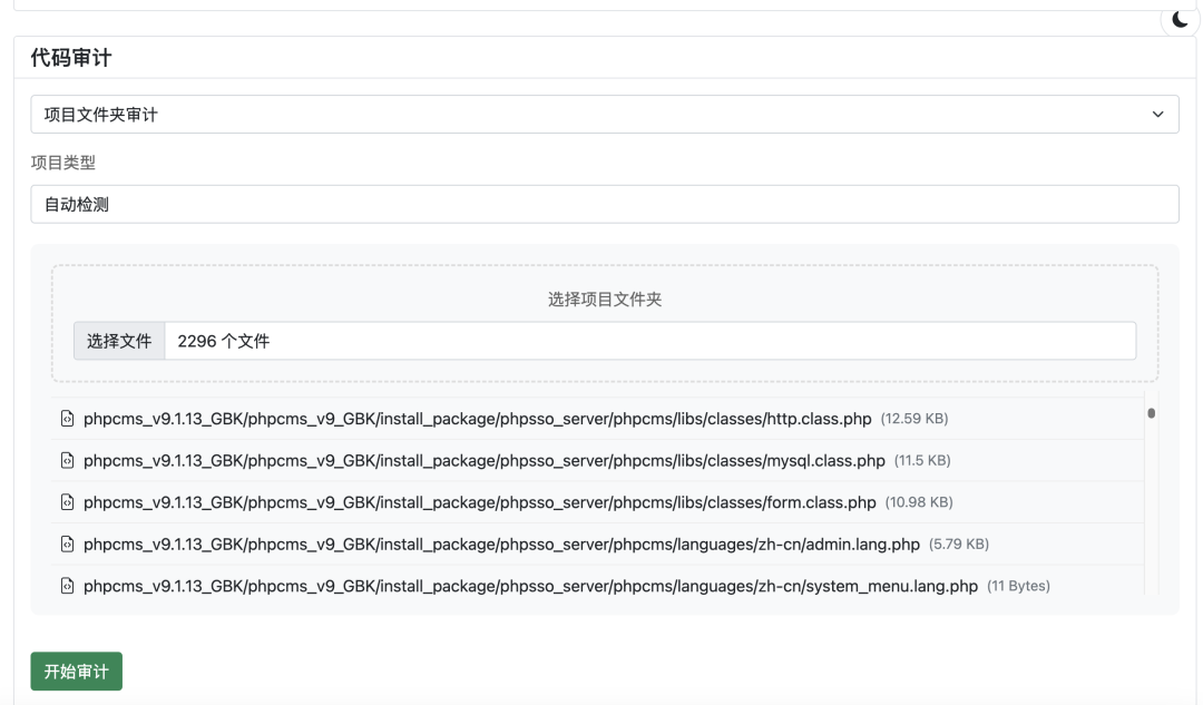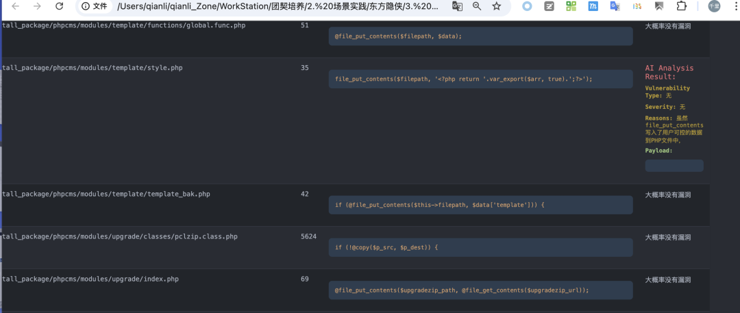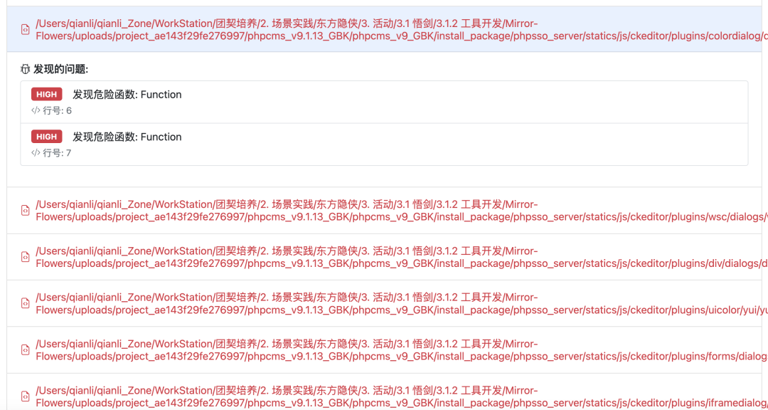 审计速度非常快,仅花费三分钟,完成静态分析,但发现该项目的展示效果一般, PHPCMS V9.1.13存在任意文件包含漏洞,但这里也并未发现相关文件路径结果。