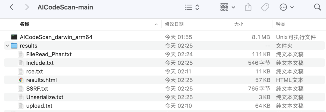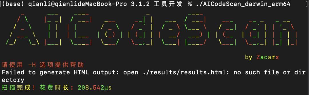 Example: AICodeScan -L java -d ./net AICodeScan -L php -d ./net AICodeScan -d ./net -m"CheckSession.jsp"