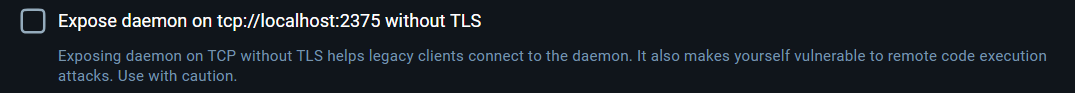 我想在开始之前强调,这个攻击链需要用户在其 Docker 设置中启用特定选项。默认安装是安全的,但如果你是 Docker 的常规用户,请确保禁用此选项,否则你将面临 RCE 风险。