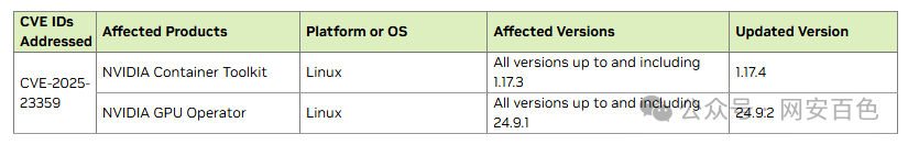 此问题影响所有版本的NVIDIA Container Toolkit(包括版本1.17.3)和NVIDIA GPU Operator(包括版本24.9.1)。
