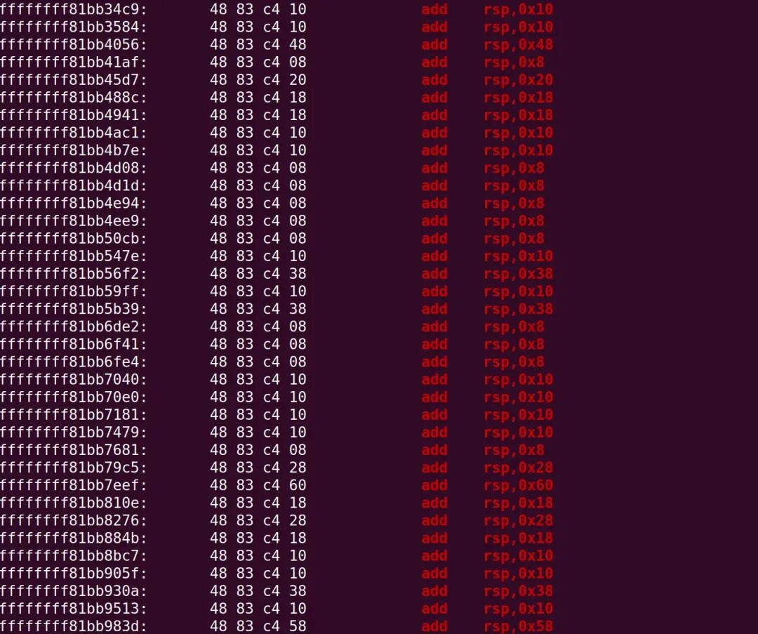 使用objdump -d -M intel vmlinux > ./gadget.txt