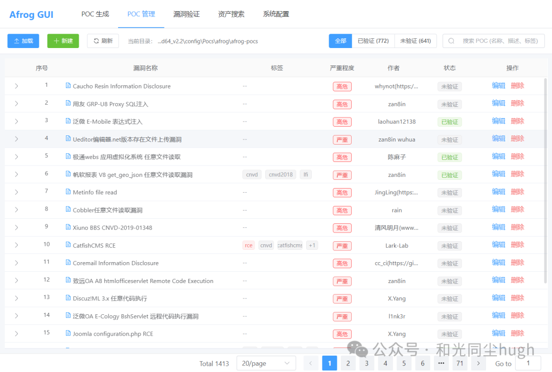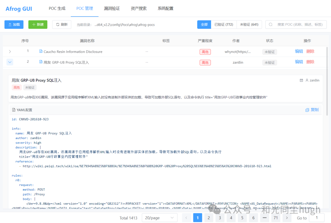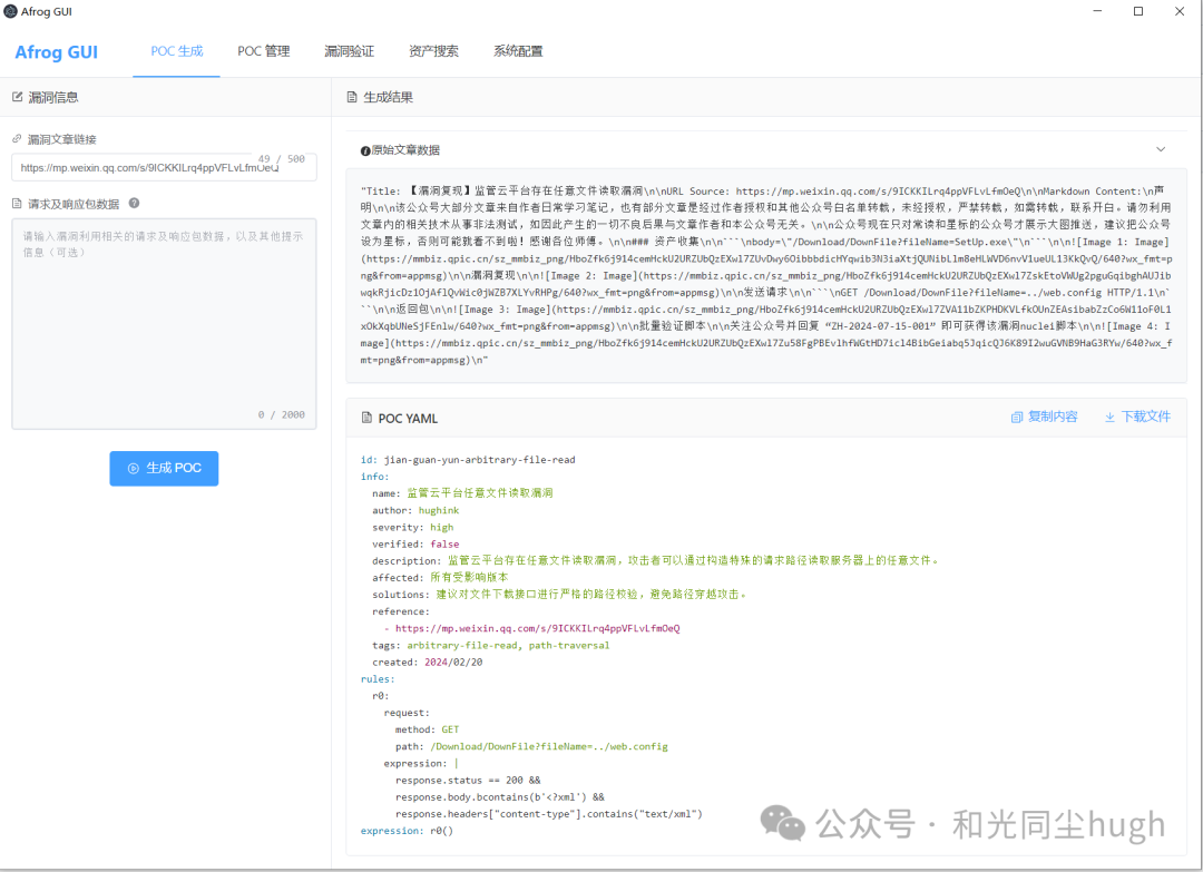 afrog poc (AI 生成 ) ———>资产搜索(获取验证目标)——>漏洞验证(验证是否可用)——>POC管理