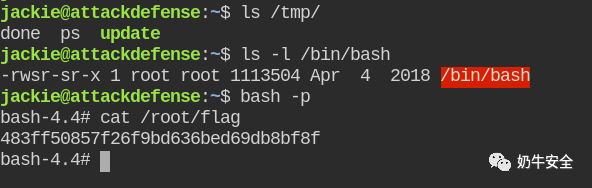 可以通过 netcat 获得 root 特权反向连接,但这里在 bash 上设置 suid 位,然后使用 bash -p -i 获得特权 bash