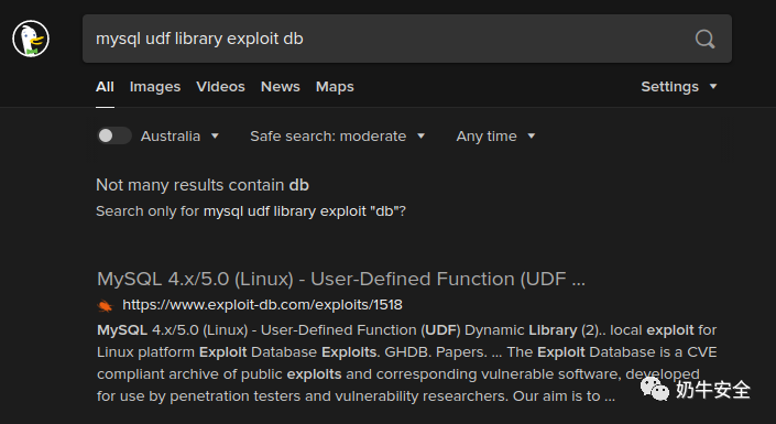 由于无法写入任何文件或插件目录内, 可以使用以上信息为MySQL编译shellcode。幸运的是,在 exploit-db 上发现了一个漏洞。