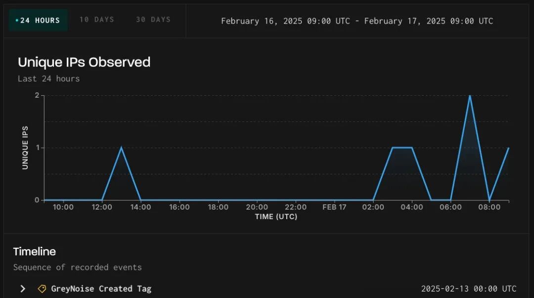 GreyNoise于2月13日透露,其已开始检测到针对CVE-2025-0108的攻击尝试。截至2月14日上午,该公司已观测到来自5个不同IP地址的攻击活动。