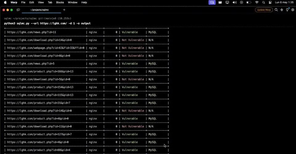 这玩意儿最骚的操作就是深度爬取机制。比如我们遇到个典型场景:目标站点存在多级商品分类目录,传统扫描器到第三层页面就歇菜了。用sqlmc -d参数直接干到五层深度,愣是把藏在商品评价分页里的注入点给刨出来了。更绝的是它会自动标记存在漏洞的服务器指纹,这对后续写渗透报告太友好了。、