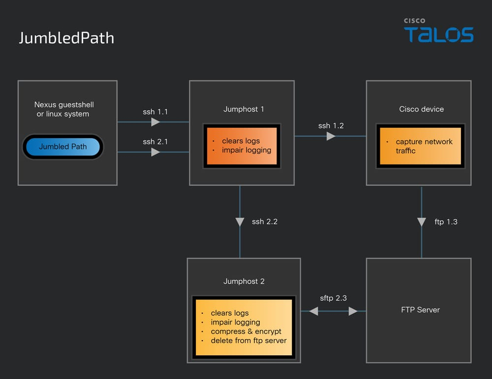 Cisco Talos 研究人员报告称,Salt Typhoon威胁组织使用一种名为 JumbledPath 的定制实用程序来监视美国电信网络流量。
