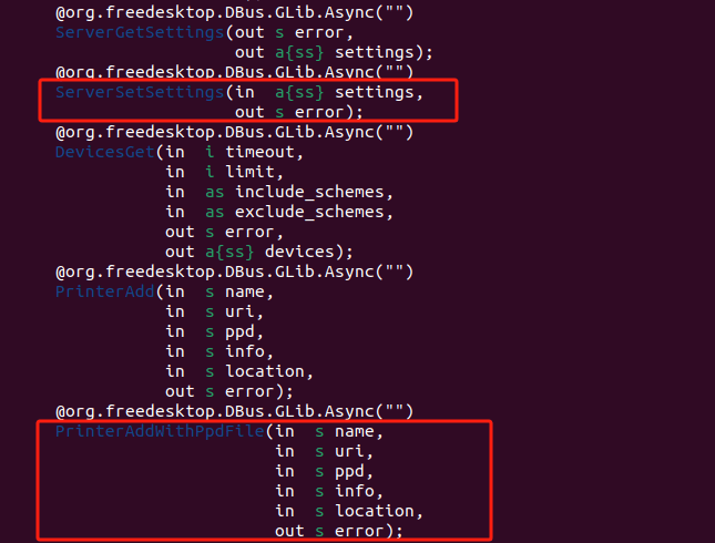 gdbus introspect–system–destorg.opensuse.CupsPkHelper.Mechanism–object-path /可以看到更为详细的描述信息: