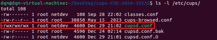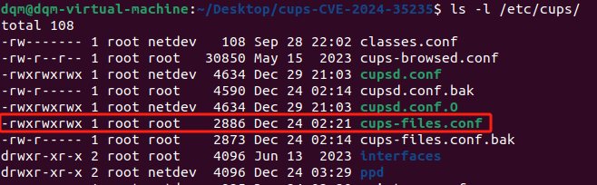 尽管在/tmp/目录下无法执行删除和修改操作,但AppArmor允许cupsd进程对/etc/cups目录下的文件进行修改。因此我们将目标改为修改文件