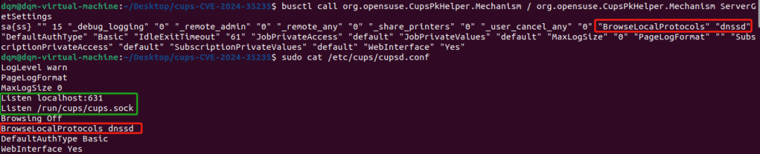 调用CUPS的Dbus方法ServerSetSettings,修改Listen参数,使其指向/tmp/stage/cupsd.conf。重启完成后,/etc/cups/cupsd.conf将全局可写。