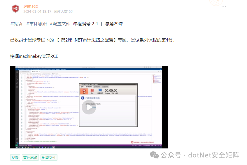 为了直观展现此类攻击的危害,并在我们的dot.Net安全代码审计课程中深入讲解,我们设计了视频教程和demo代码案例。通过这些材料,可以亲自挖掘漏洞,并观察实际操作触发漏洞的过程。以下图示展示了相关的内容和演示效果。