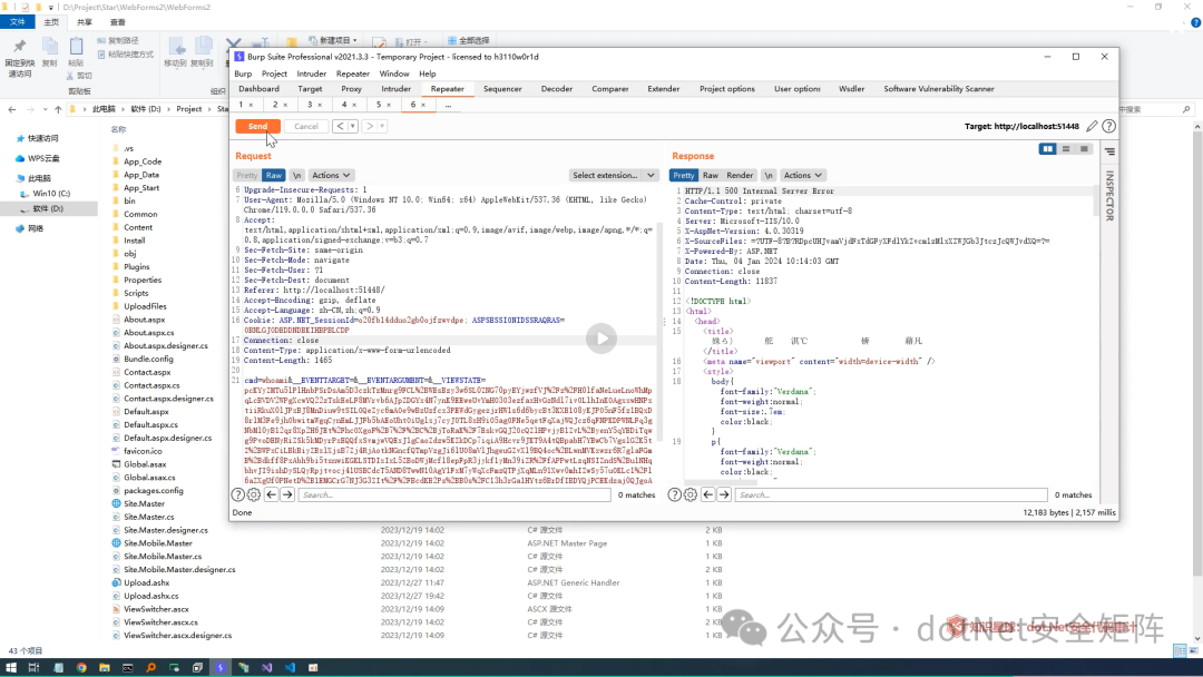 若这些密钥被盗或泄露给威胁者,他们可利用这些密钥制作恶意ViewState,并通过POST请求发送至网站。当目标服务器上的.NET运行时处理该请求时,由于使用了正确的密钥,ViewState将被解密并验证通过。随后,恶意代码将被加载到工作进程内存中并执行,使威胁者能够在目标IIS Web服务器上获得远程代码执行能力。