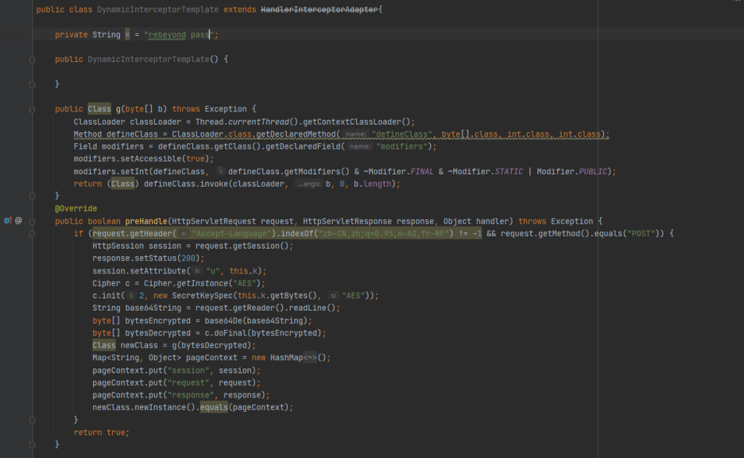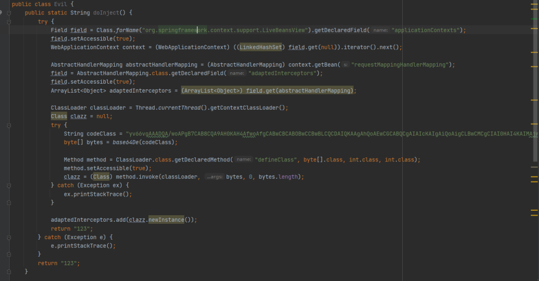对于内存马的注入这里我们可以考虑注入spring的Interceptor内存马,因为之前LandGrey师傅已经提出过Demo这里直接使用就好了