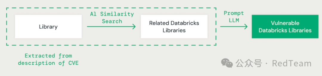 通过少量Prompt并使用LLM,我们从CVE描述中提取相关库。随后,我们利用基于人工智能的向量相似度方法,将识别出的库与Databricks现有库进行匹配。