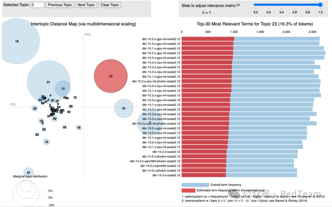 在我们的方案中,我们利用了相关性评分,特别是LDA方法,将库根据它们所关联的服务进行聚类。每个库作为一个文档,而它所在的服务则作为该文档中的词汇。这种方法使我们能够有效地将库归类为具有共同服务上下文的主题。