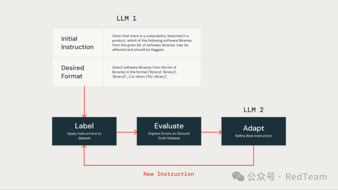 随后,我们使用第二个LLM——”指令调优器”。我们将初始提示和真实数据集的错误反馈输入该模型。通过迭代生成的改进提示,我们最终选出了表现最佳的版本。