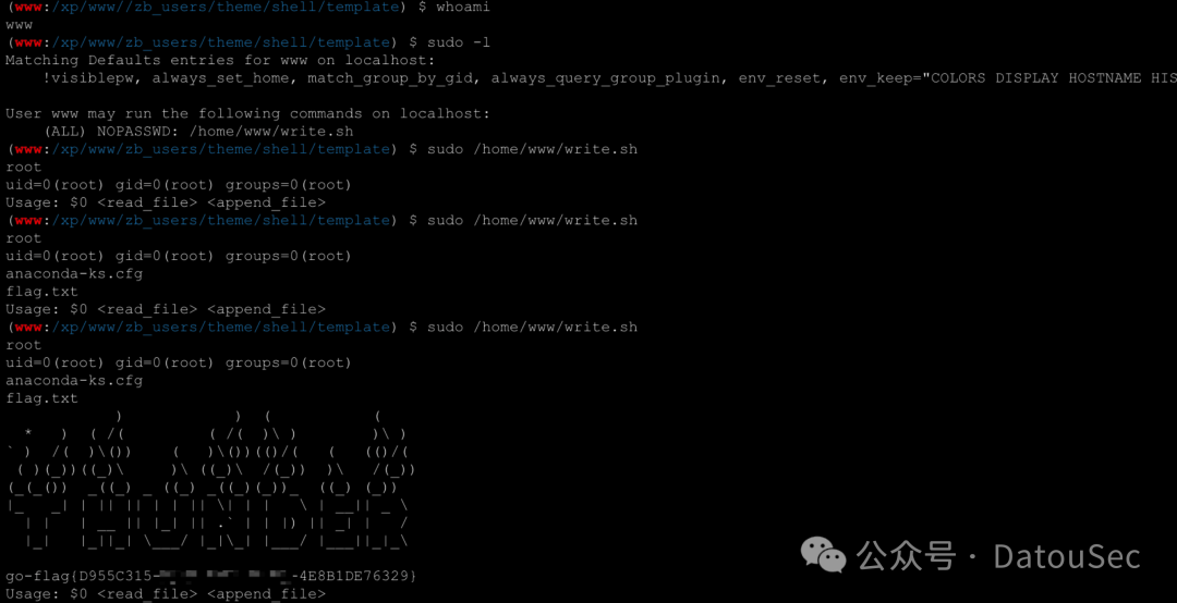 sudo小提一手权,这个/home/www/write.sh很微妙,直接root