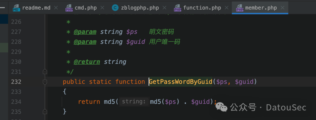 ps = 123456guid = 24d876c8772572cf839674c5a176e41cPassword = md5(md5(123456) + 24d876c8772572cf839674c5a176e41c)Password = 30492f76a0fbcf3906cce8b4b566d6b6
