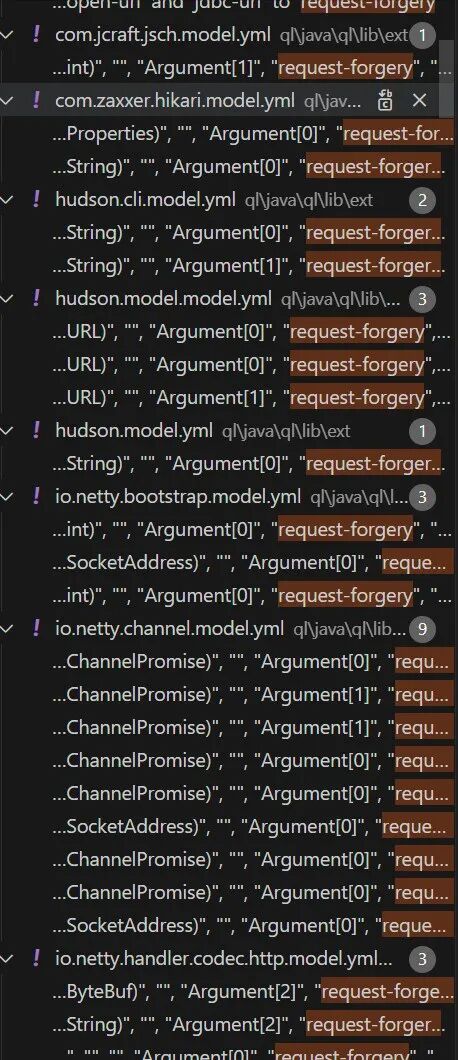 他的实现类是 DefaultRequestForgerySink 类,而匹配的是 request-forgery 类型