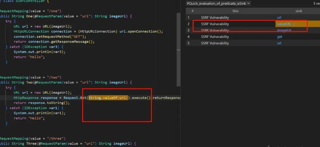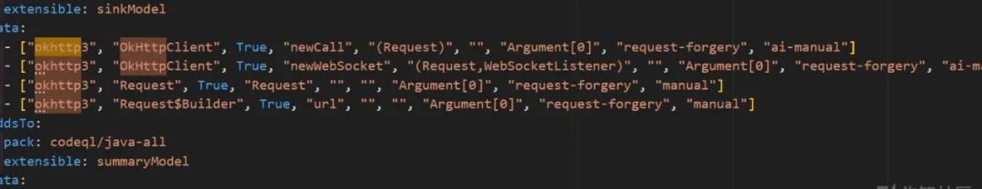 sinkNode 就是标记特定的数据流的,而 request-forgery 表示被标记的类型