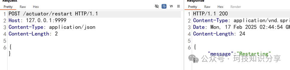 {"mbean": "org.springframework.boot:name=Restart,type=Endpoint","operation": "restart", "type": "EXEC",}