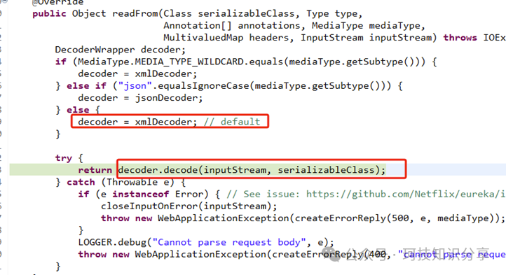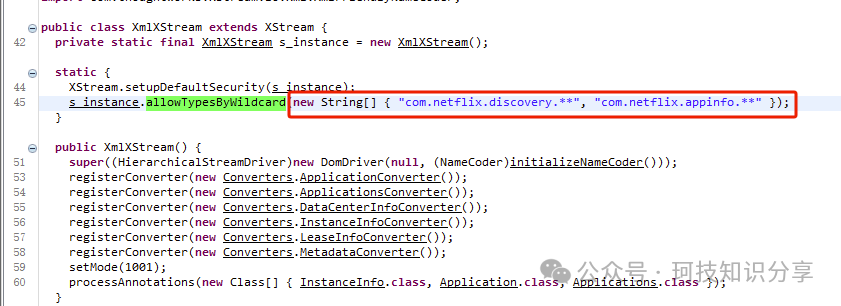 除此之外,eureka-client自己实现了XmlXStream,在1.8.7版本添加了白名单类。