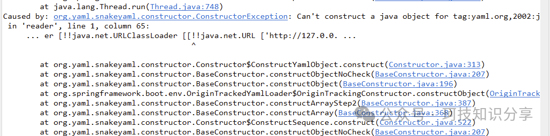 但这个动作非常危险,因为它虽然能触发远程加载yml,但无法完成反序列化,并且还会因此抛错并退出springboot进程。