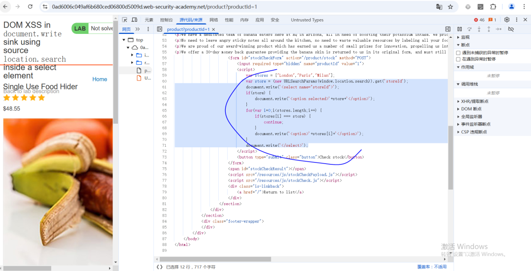 - 我们使用 https://portswigger.net/ 靶场,打开插件跟踪调用链,之后console进入源代码