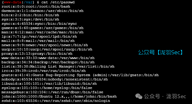 也可以向 /etc/passwd 追加一个用户,密码为 password@123 (使用openssl将这个密码加盐,不加也可以,得到结果advwtv/9yU5yQ,所以完整的命令如下)